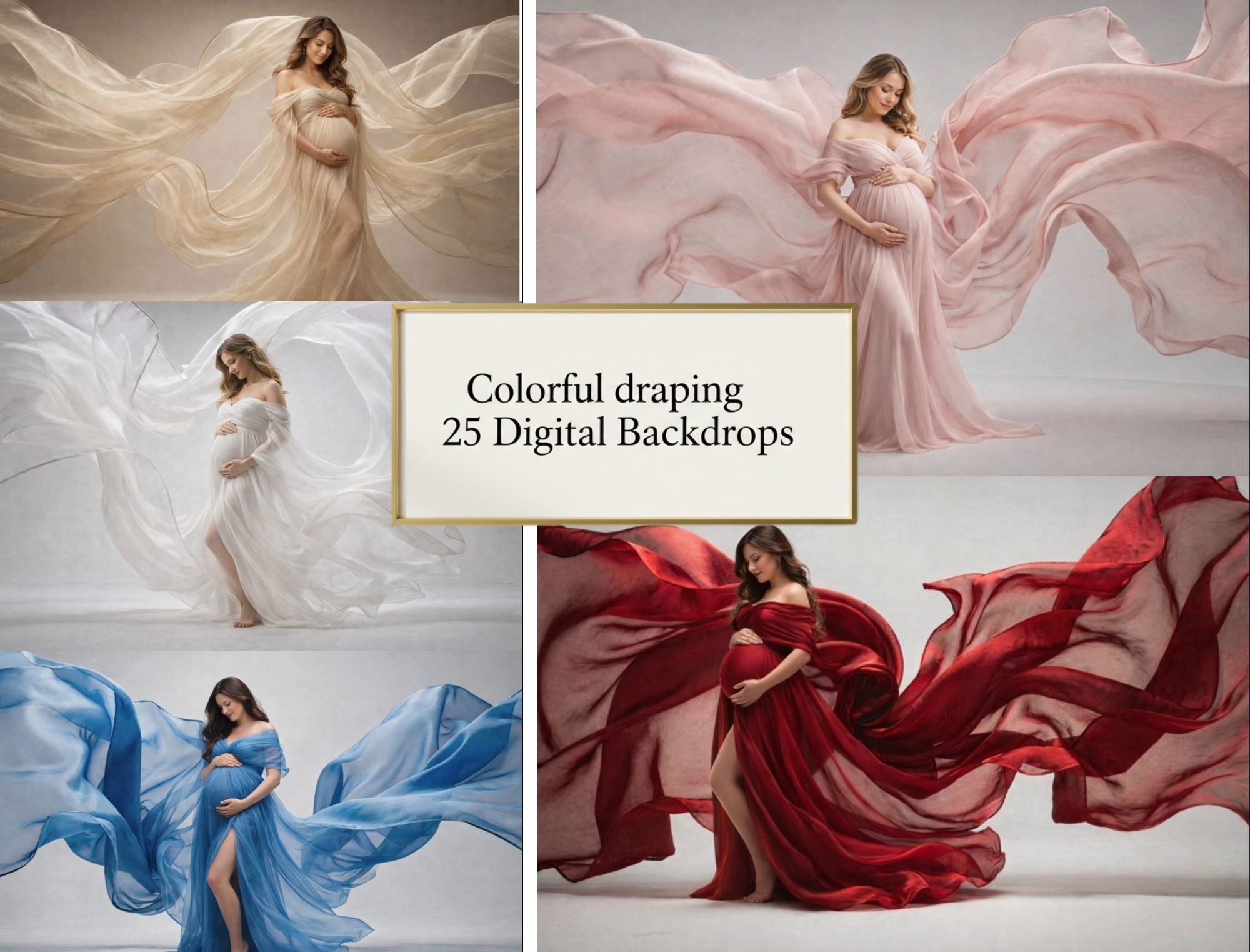 Get instant access to 25 Colored Draped Fabric Digital Backdrops, Maternity Photography Backgrounds, Flowing Cloth Backdrop Bundle, Studio Props JPG and start using it in your projects today.